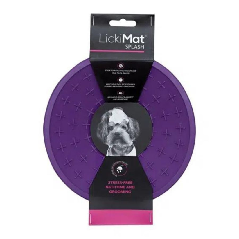 La LickiMat Splash es ideal para mantener a tu perro entretenido durante el baño o momentos de estrés. Su base con ventosa se adhiere a superficies lisas y mantiene a tu mascota enfocada mientras disfruta de una golosina untada.