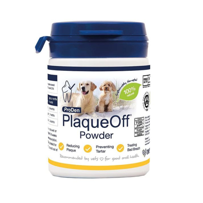 El modelo Plaqueoff® de Proden es reconocido por su calidad y eficacia en el cuidado dental de las mascotas. Este producto es fácil de usar, simplemente se espolvorea sobre la comida de tu perro una vez al día. La cantidad a utilizar varía según el peso de tu mascota, por lo que es importante seguir las instrucciones del paquete para obtener los mejores resultados.